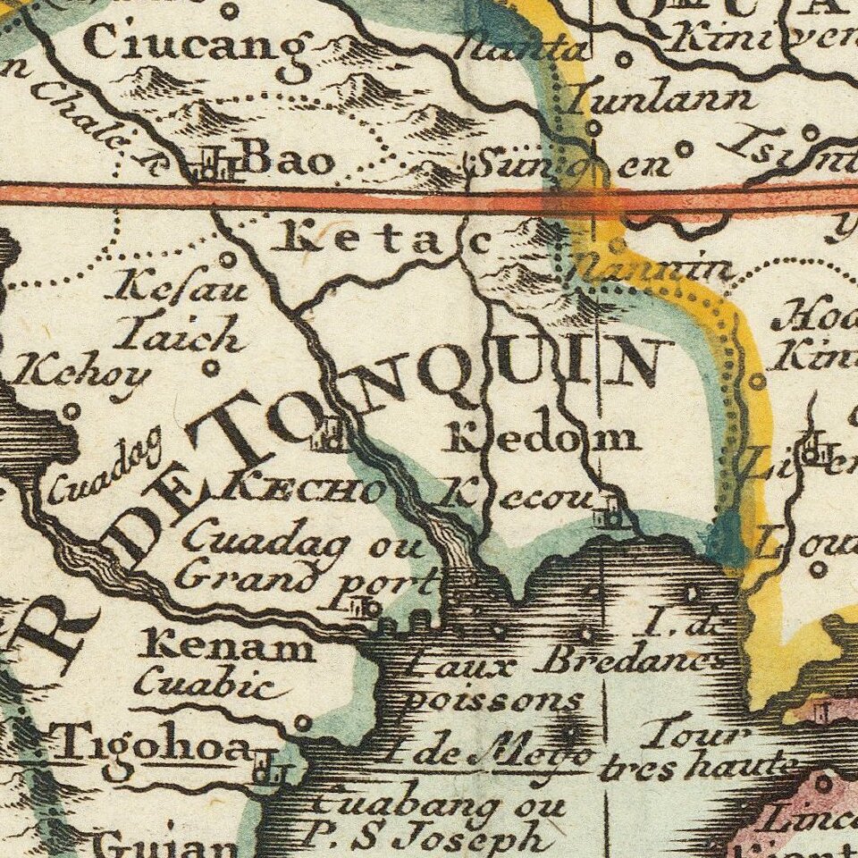 The East Sea is named the Sea of Korea. The Maritime Continent is well mapped, but to the west lie the "New Philippines." Many islands are named in this apparent ghost archipelago. Chatelain has used several sources, such as those of the Portuguese explorer Texeira, which have led him to map other ghost islands in the Indian Ocean. Despite this (or perhaps, because of it), there are are a surprising number of villages located throughout Indonesia.