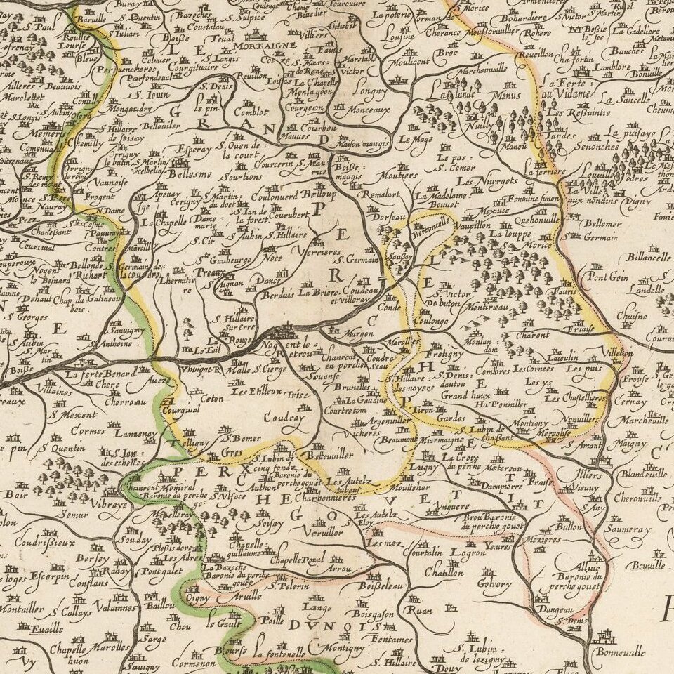 Attractive double-page engraved map of Perche, typifying local French cartography of the early-to-mid 17th century.