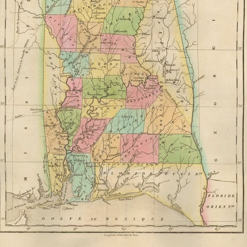 Nice example of the French edition of Carey & Lea's sought after map of Alabama.