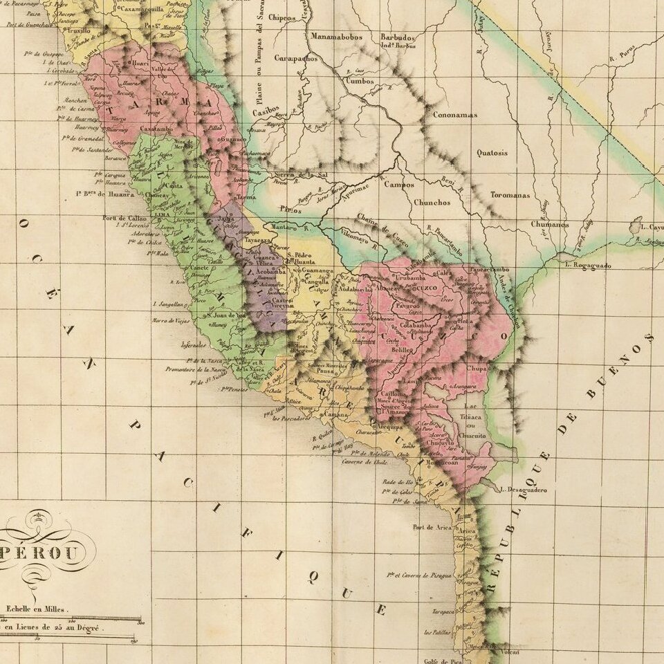 Nice example of the Buchon's map of Peru, pubilshed in Paris in 1825.