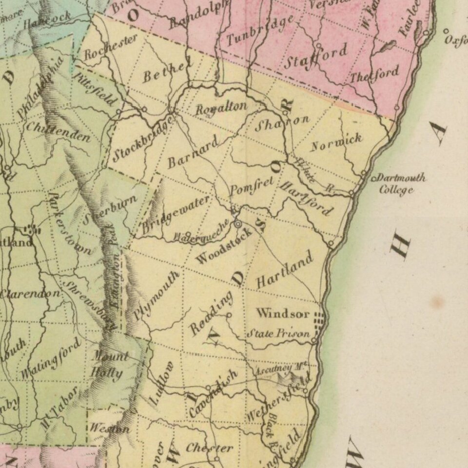 Excellent wide margined example of the French edition of this map of Vermont from Carey & Lea's Atlas.