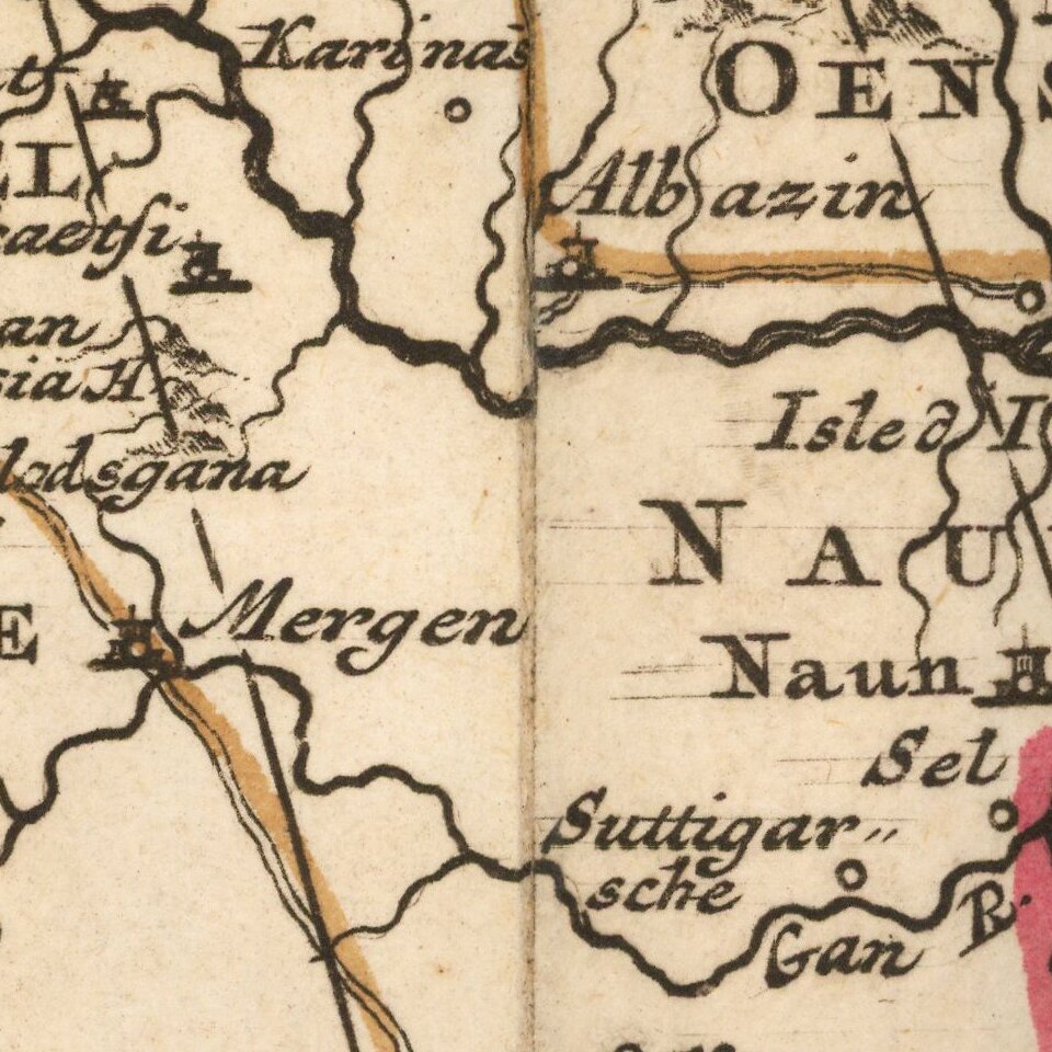 As his occupations suggest, Witsen was keenly interested in maritime affairs and he practiced cartography as part of his larger studies. He was also an expert in Russian affairs, having traveled there in the 1670s, which explains how he had the skill and knowledge to compile this map and others. In 1690, he published the first map of Siberia—a south-oriented map, as many Russian maps were at that time. Two years later, he produced a book called Noord en Oost Tartarye to accompany an earlier version of this map, first published in the late 1680s. After the privilege expired, it was reissued by Mortier.