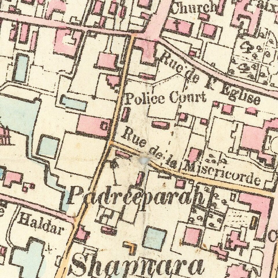 The map provides an exceptionally detailed look at the city, which at the time was one of three remaining French colonies in India.