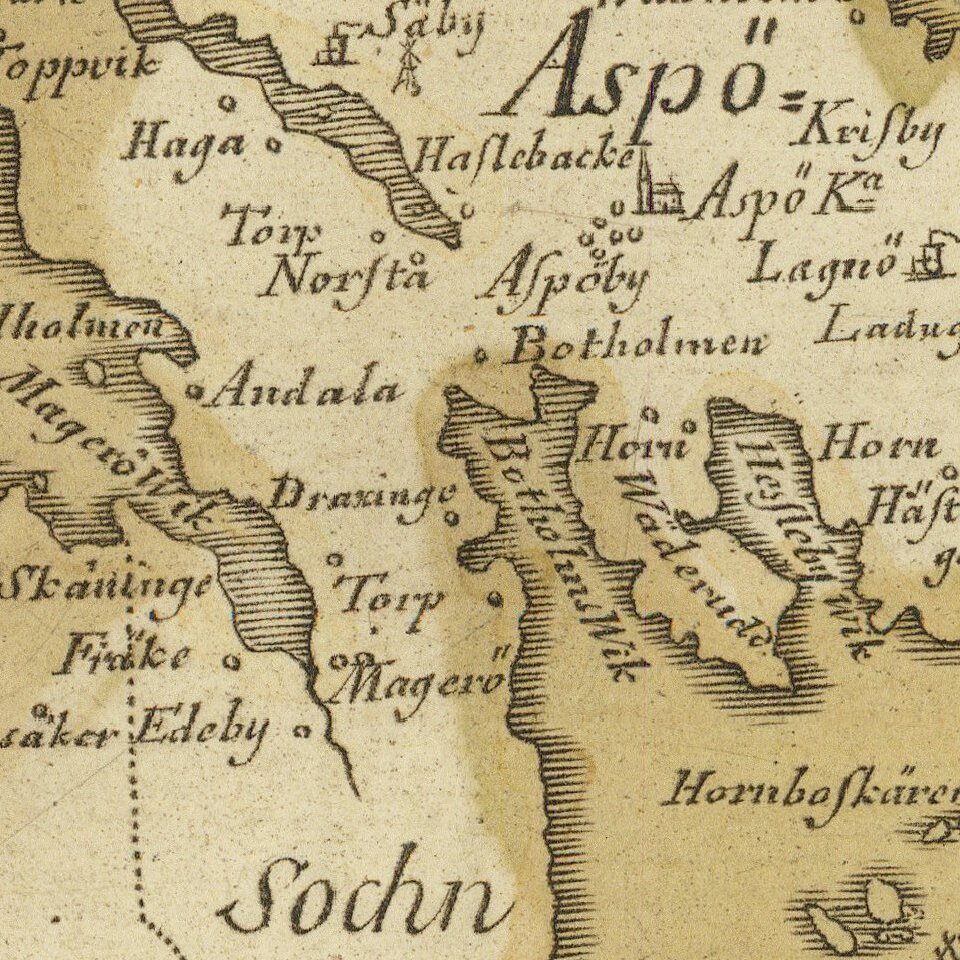 The map's engraver, Erik Geringius, lived from 1707-1747. He was one of the most important Swedish engravers during the first half of the 18th century.