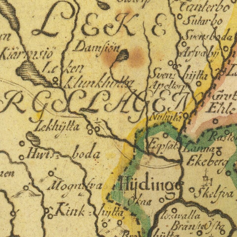 Antique engraved map of the historical Swedish province of Nerike, in central Sweden east of Lake Vanern.