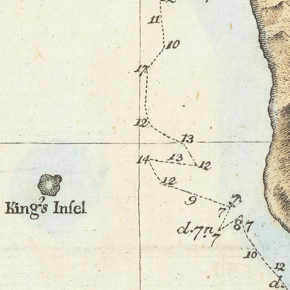 The map covers the area from the Bering Strait and the coast south of Norton Sound to the coast north of Cap du Prince de Galles. The coastline is well presented with hachure showing mountains, sections of coastlines and islands with place names and soundings. Isles de Clerke is partially shown. The tracks of the 1778 and 1779 exploration are shown, Cook having done the former and Clerke the latter after Cook's death in Hawaii in Feb. 1779.
