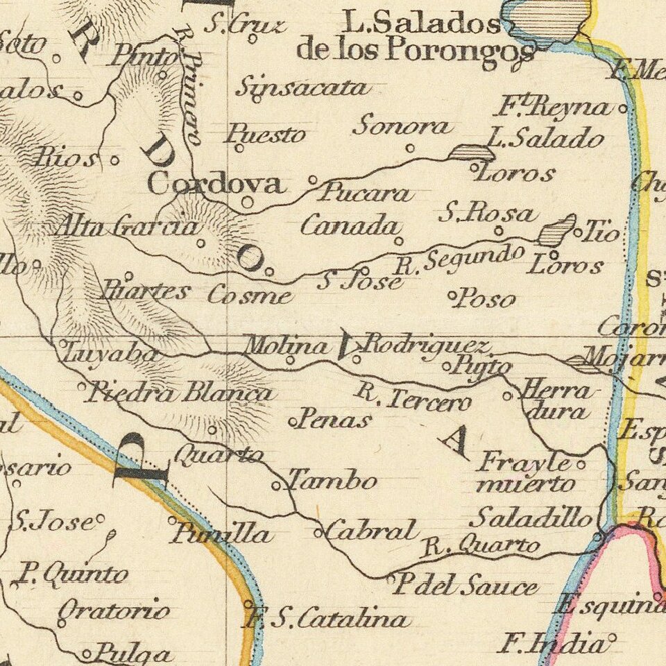 Vignettes of a Travelling Post, the Gobernador, the Grand Square in Buenos Ayres, and a Water Seller in Buenos Ayres. Tallis was one of the last great decorative map makers. His maps are prized for the wonderful vignettes which adorn them.