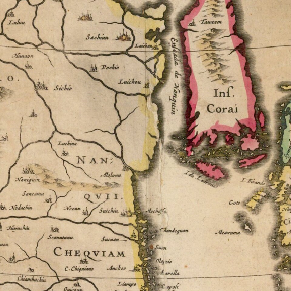 Decorative map of China, Japan and Korea and includes the north portion of the Philippines from Jansson's Novus Atlas.