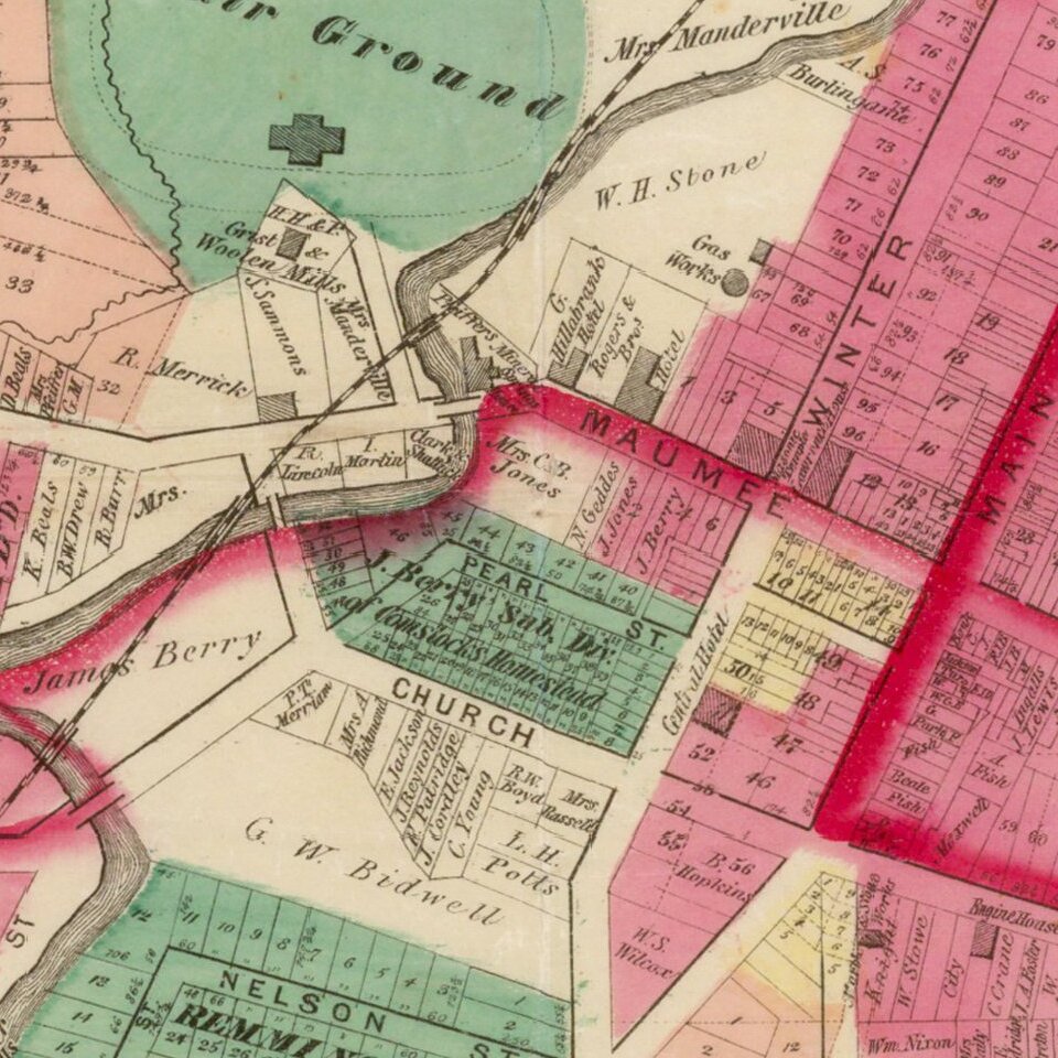 Detailed cadastral map of Adrian Michigan.