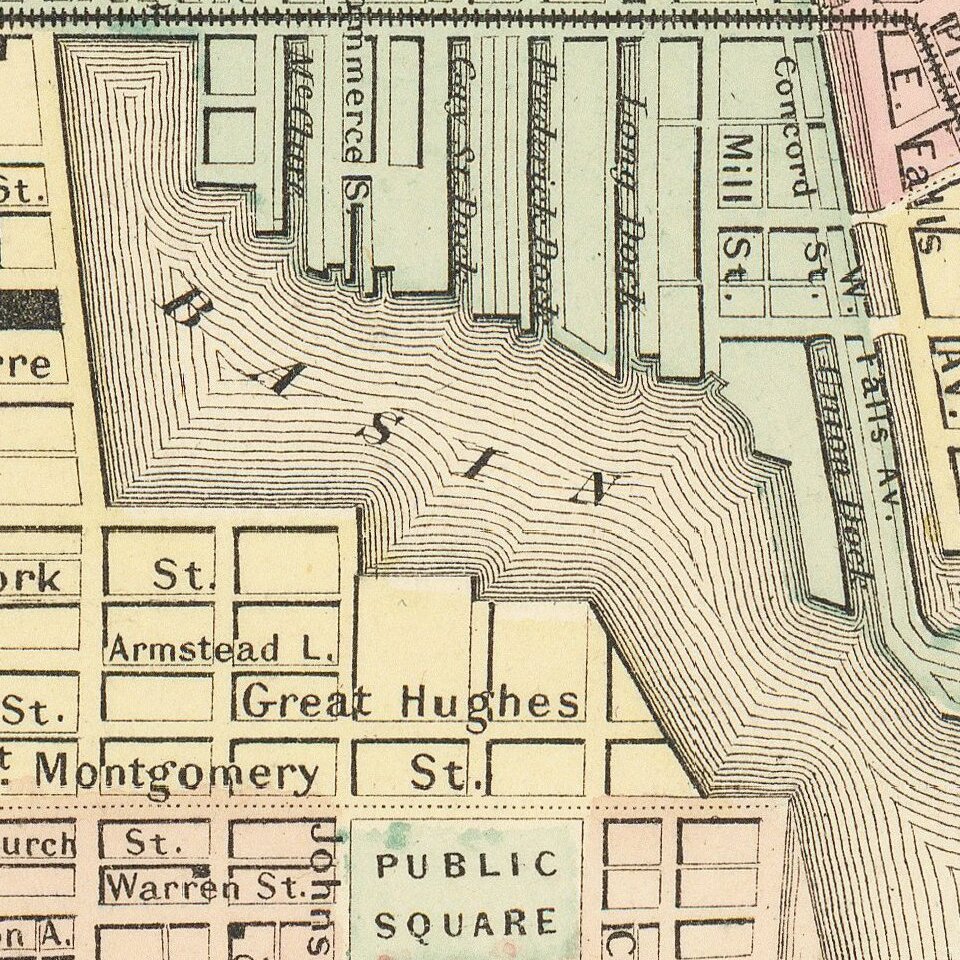 The first printed item with his imprint is dated 1833, a reprint of S. Stiles & Company’s edition of David Burr’s map of the state of New York. He also printed John Disturnell’s map of New York City in 1833. Colton’s next cartographic venture was in 1835, when he acquired the rights to John Farmer’s seminal maps of Michigan and Wisconsin. Another early and important Colton work is his Topographical Map of the City and County of New York and the Adjacent Country (1836). In 1839, Colton began issuing the Western Tourist and Emigrant’s Guide, which was originally issued by J. Calvin Smith.