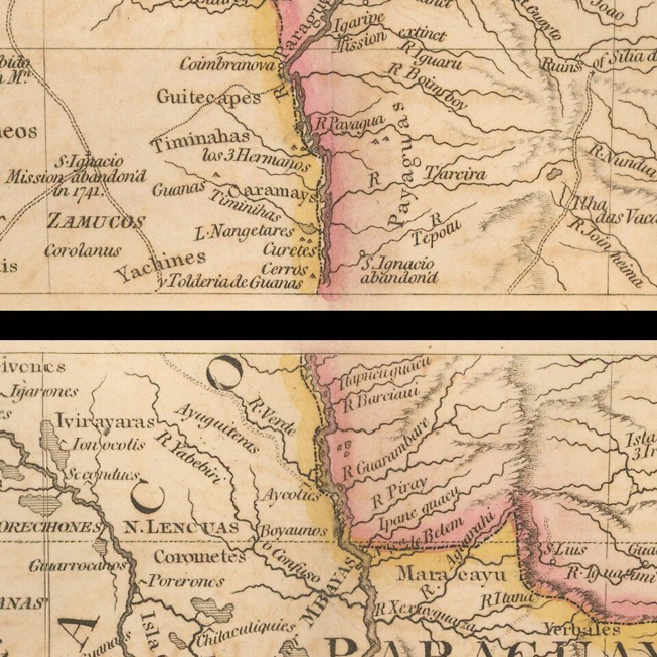 The map is based upon original manuscript maps to His Excellency the late Chevalier Pinto and João Joaquim da Rocha, João da Costa Ferreira, El Padre Francisco Manuel Sobrevida, &c. and from the most authentic edited accounts of those countries. The geopolitical divisions would drastically be altered in the years to come as a consequence of the Independence and creation of Republics of most of South America from Spain's colonies. It is also, due to its scale, extremely detailed and includes as much up-to-date information as was by then available. The map is embellished with an enormous title cartouche on the lower right sheet.