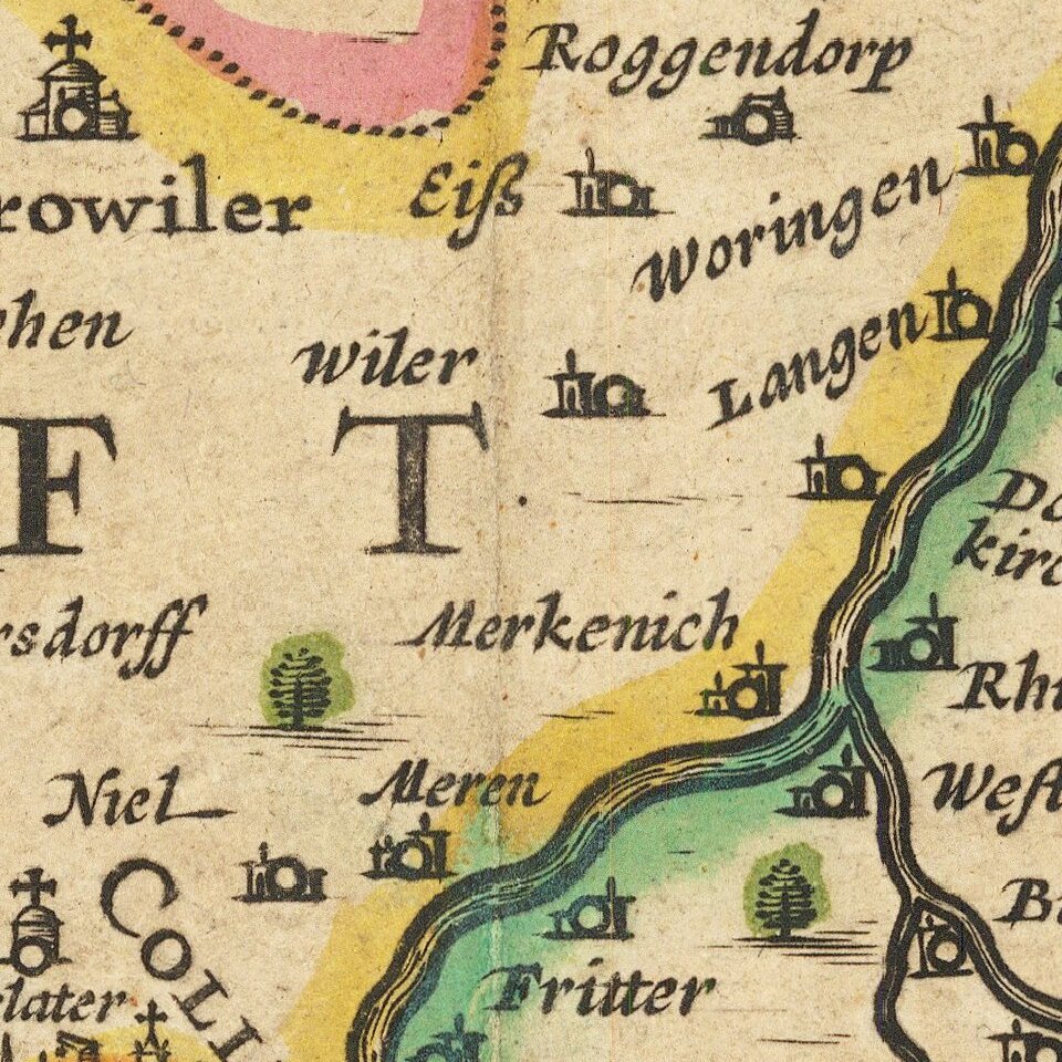Shows Coblentz, Cologne, Wessel, Kempen, Dortmund and the course of the Rhine.