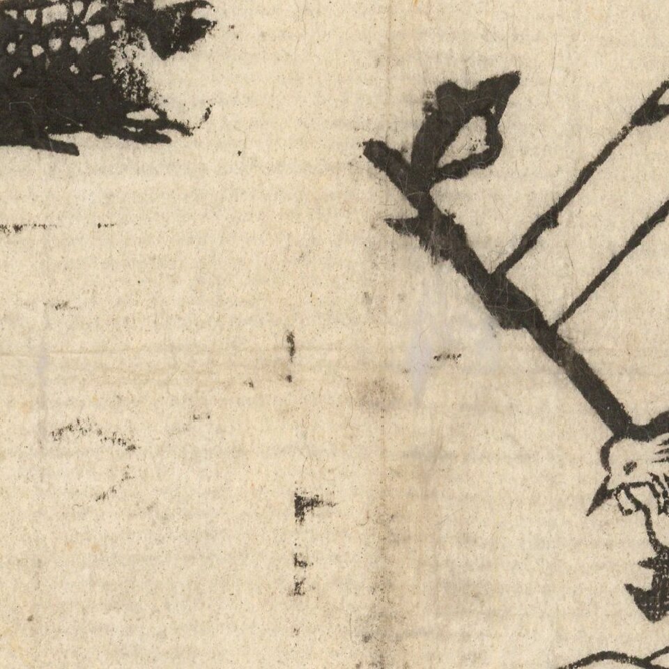 The kawaraban took up a range of topics, including natural disasters, superstitious happenings, murders, and less commonly, political satire. Printers chose topics more to entertain and satisfy the readers’ curiosity than to educate them. Visual components such as illustrations, diagrams, and maps attracted the people to the print and helped them to understand the text, as well as sometimes offering additional information.
