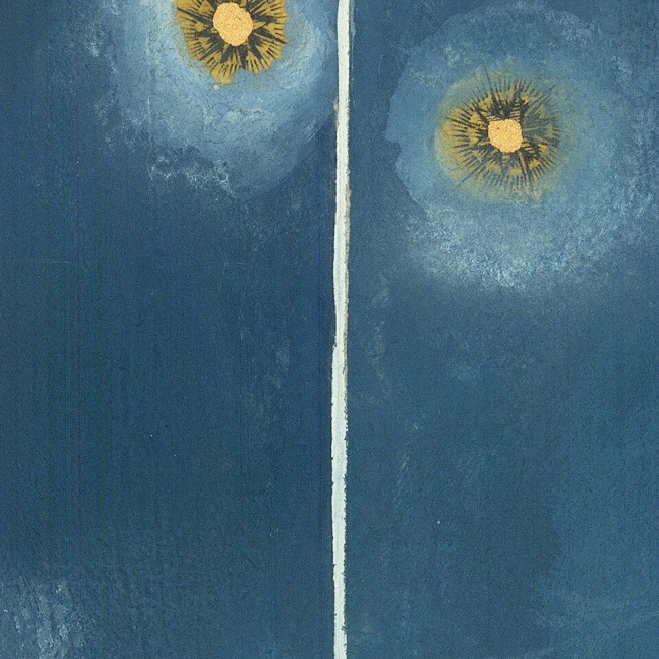 Striking full color example of Bayer's celestial chart of Corvus, with the stars heightened in gold. The present example has no text on the verso.