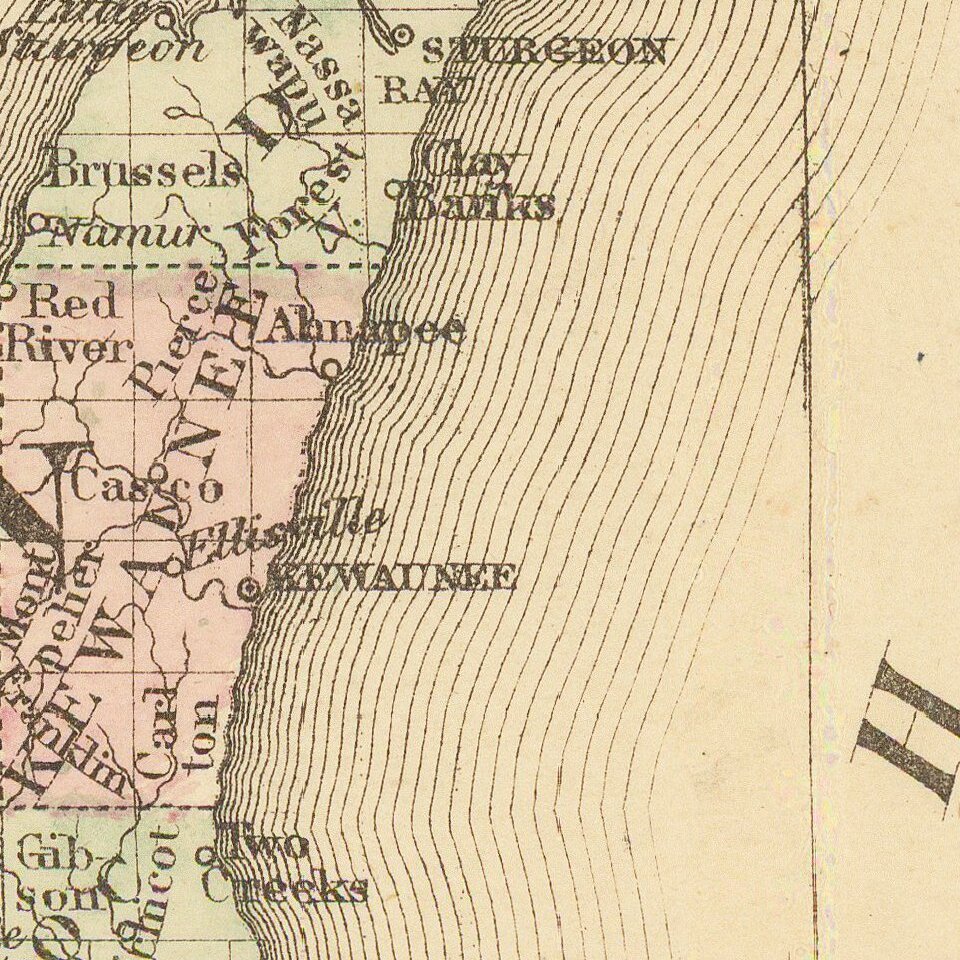 Detailed map of Michigan and Wisconsin, hand-colored by counties.