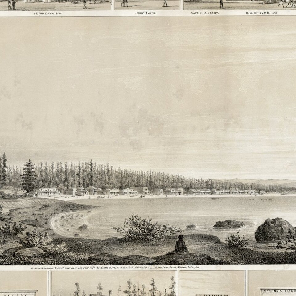 Decorative example of Kuchel & Dresel's view of Crescent City, published in San Francisco in 1857.