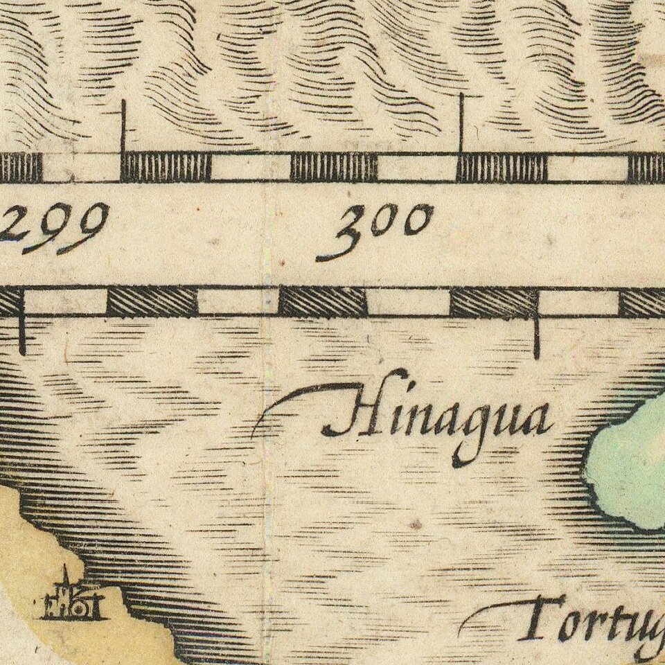 Hondius moved to London in 1584, fleeing religious persecution in Flanders. There, he worked for Richard Hakluyt and Edward Wright, among others. Hondius also engraved the globe gores for Emery Molyneux’s pair of globes in 1592; Wright plotted the coastlines. His engraving and nautical painting skills introduced him to an elite group of geographic knowledge seekers and producers, including the navigators Drake, Thomas Cavendish, and Walter Raleigh, as well as engravers like Theodor De Bry and Augustine Ryther. This network gave Hondius access to manuscript charts and descriptions which he then translated into engraved maps.
