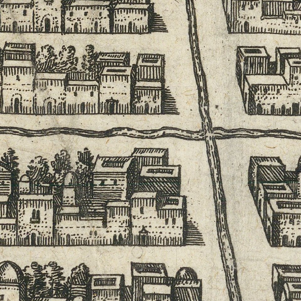 Detailed view of the town of Cusco in Peru, then one of the largest cities in the Americas.
