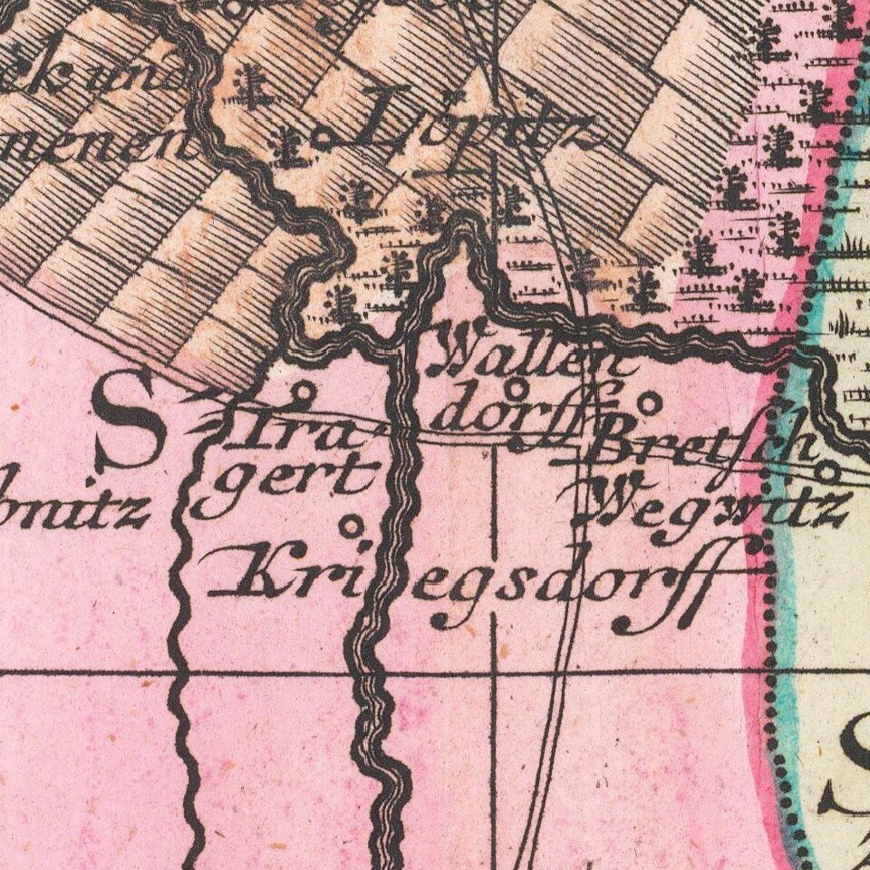 Matthäus Seutter (1678-1757) was a prominent German mapmaker in the mid-eighteenth century. Initially apprenticed to a brewer, he trained as an engraver under Johann Baptist Homann in Nuremburg before setting up shop in his native Augsburg. In 1727 he was granted the title Imperial Geographer. His most famous work is Atlas Novus Sive Tabulae Geographicae, published in two volumes ca. 1730, although the majority of his maps are based on earlier work by other cartographers like the Homanns, Delisles, and de Fer.