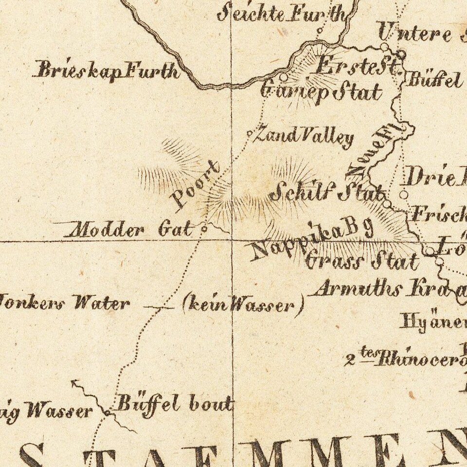 Fine early map of Southern Africa and the Cape of Good Hope, published by CF Weiland in Weimar.