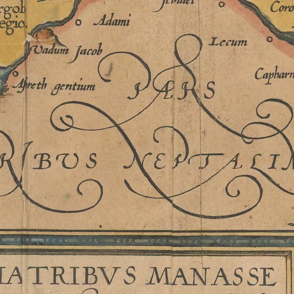 Nice old color example of the map of the lands of Gilead, one of the Territories of ancient Holy Land, from Van Adrichom's Theatrum Terrae Sanctae, first publshed in 1590.