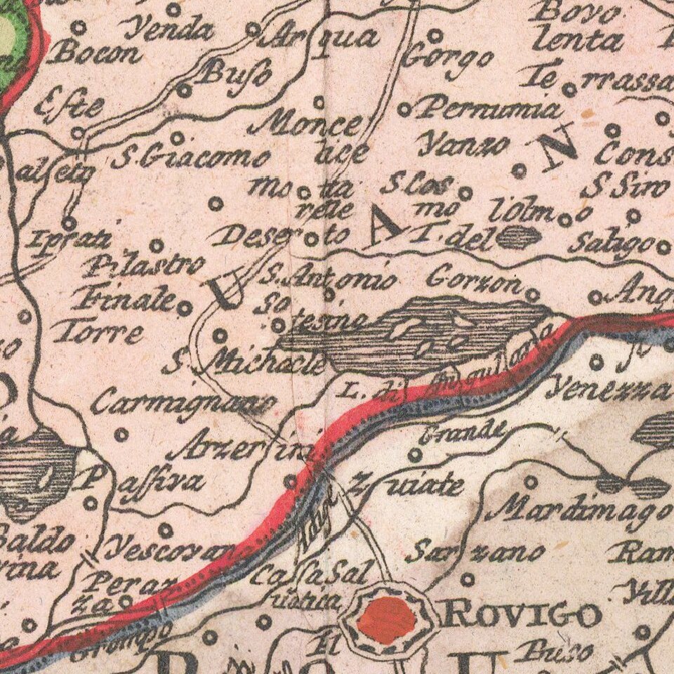 Nice full color example of this decorative map of the Dominions of Venice, published by Homann in Nuremberg.