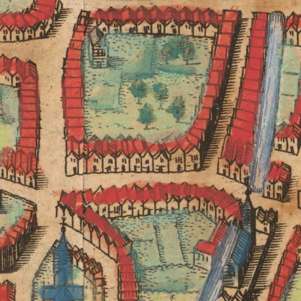 Georg Braun (1541-1622) was born and died in Cologne. His primary vocation was as Catholic cleric; he spent thirty-seven years as canon and dean at the church St. Maria ad Gradus, in Cologne. Braun was the chief editor of the Civitates orbis terrarum, the greatest book of town views ever published. His job entailed hiring artists, acquiring source material for the maps and views, and writing the text. In this role, he was assisted by Abraham Ortelius. Braun lived into his 80s, and he was the only member of the original team to witness the publication of the sixth volume in 1617.
