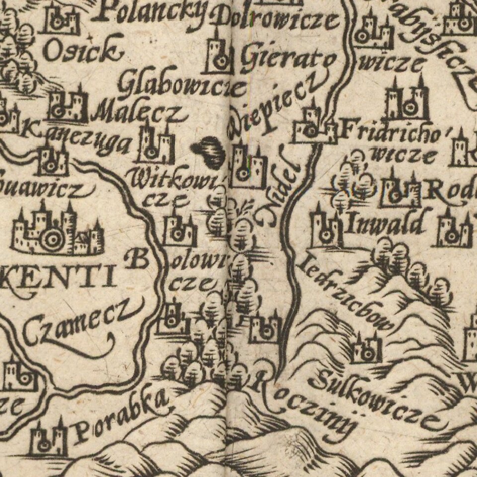 Detailed map of Southern Poland and the from the Wesel River in the north to the Carpathian Mountains in the south, centered on Auschwitz.