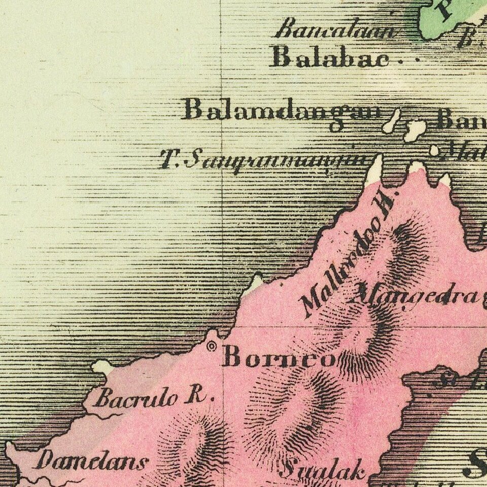Nice wash color example of David Burr's map of Southeast Asia and the Philippines