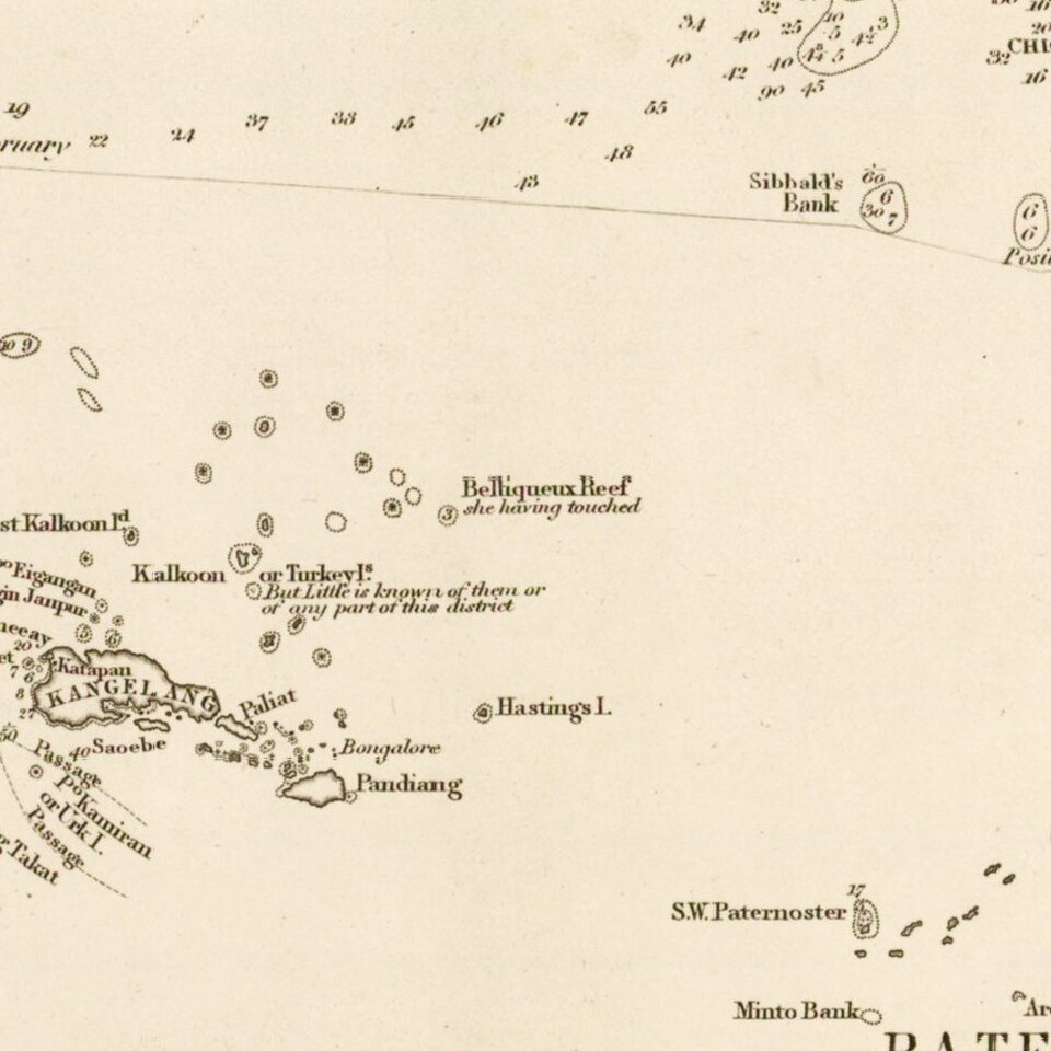 EIC hydrographer Alexander Dalrymple published three of Horsburgh’s earliest charts of the Straits of Macassar, of the western Philippines, and of the tract from Dampier's Strait to Batavia. In 1799, Dalrymple published Horsburgh’s Observations on the Eastern Seas on behalf of the EIC.