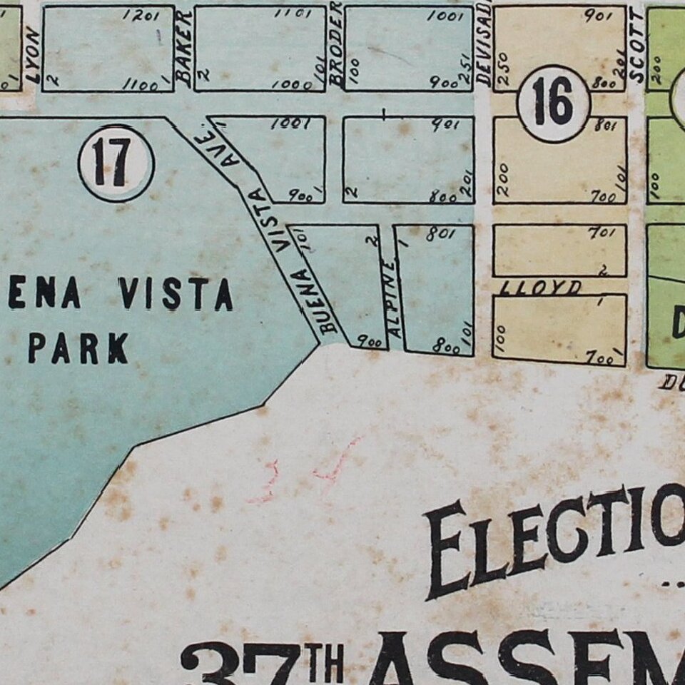 Rare Election Precinct Map for San Francisco, centered on Buena Vista Park.