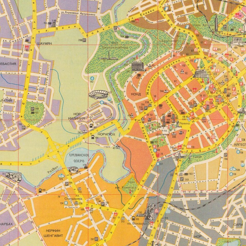 Beautiful color-printed Soviet-era map of Yerevan, then-capital of the Armenian SSR.