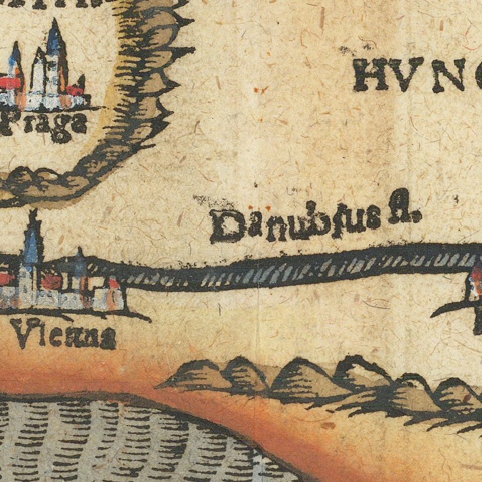 A particularly notable feature of the book were its many woodcut maps, many of them showing unique depictions of geographic features and continents. In addition to the conventional maps, the book also contained three figurative maps; the world depicted using a cloverleaf design (thought to possibly represent the Trinity with Jerusalem in the center), Europe in the form of a crowned and robed woman, and Asia as the winged horse Pegasus.