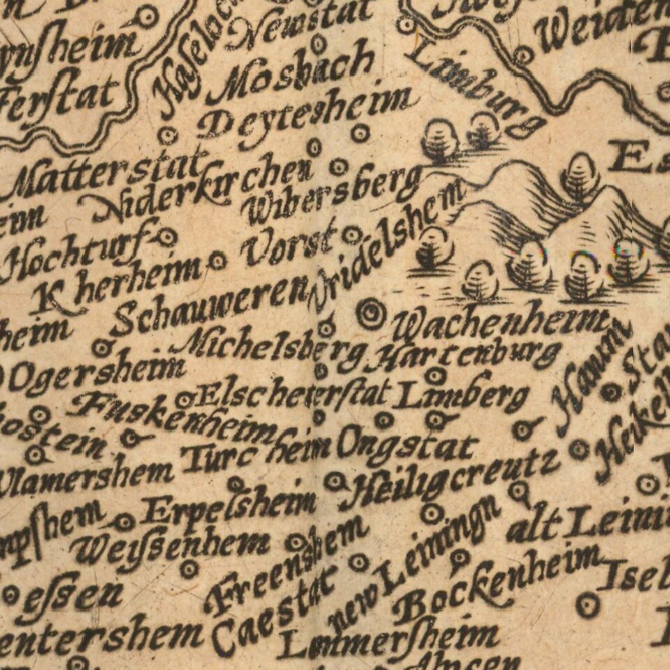 The map is centered on the Rhine River and includes Frankfurt and Mainz near the bottom of the map, along with Worms, Manheim, Stuttgart, Pforzheim and Heidelberg.