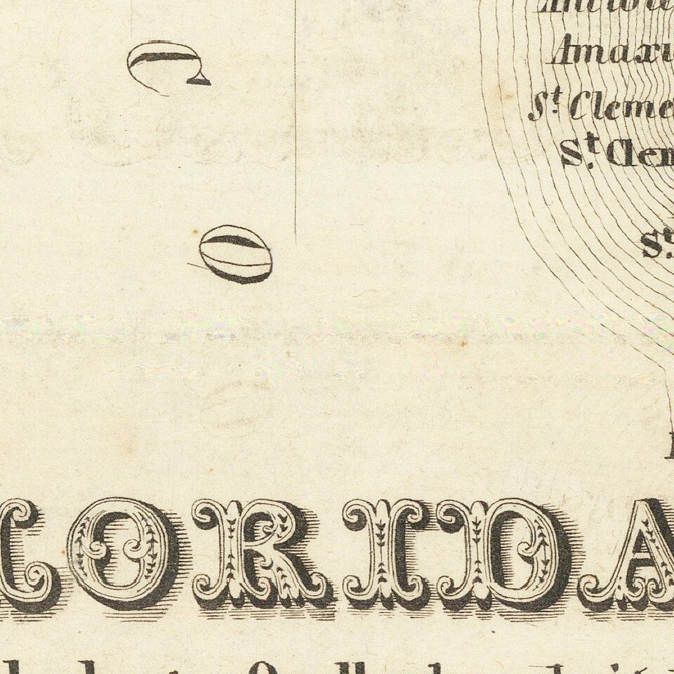Shows early roads, towns, rivers, lakes, islands and other features. Mosquito County extends from Lake George to Lake Macaco and only Monroe, Hillsboro and Dade Counties are shown in the southern 2/3rds of the state, with Dade appearing far northwest of its current position. Includes plans of Pensacola, Tallahassee and the Harbor at St. Augustine. Includes distance tables between a number of major and minor cities.
