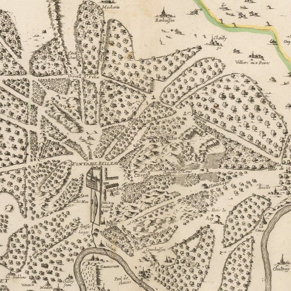 Rare map of the forest of Fontainebleau, published in Paris by Boisseau.