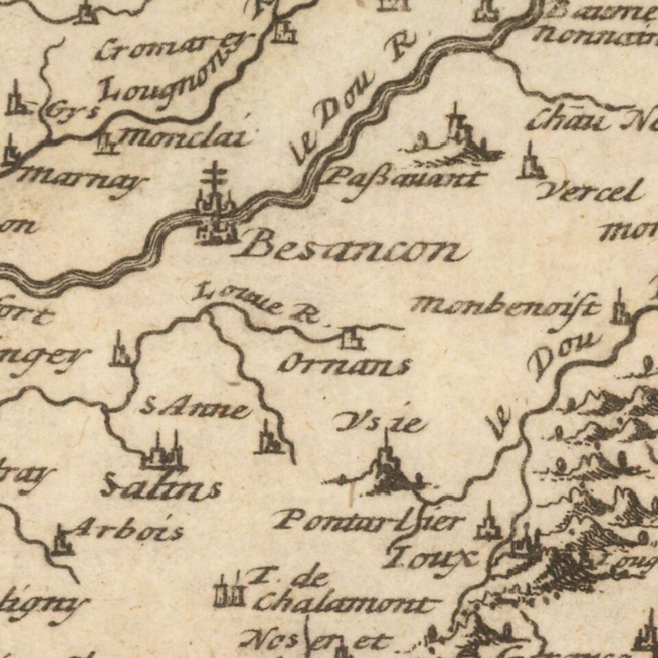 Rare map of Franche Comte, published by Sir Jonas Moore in London.