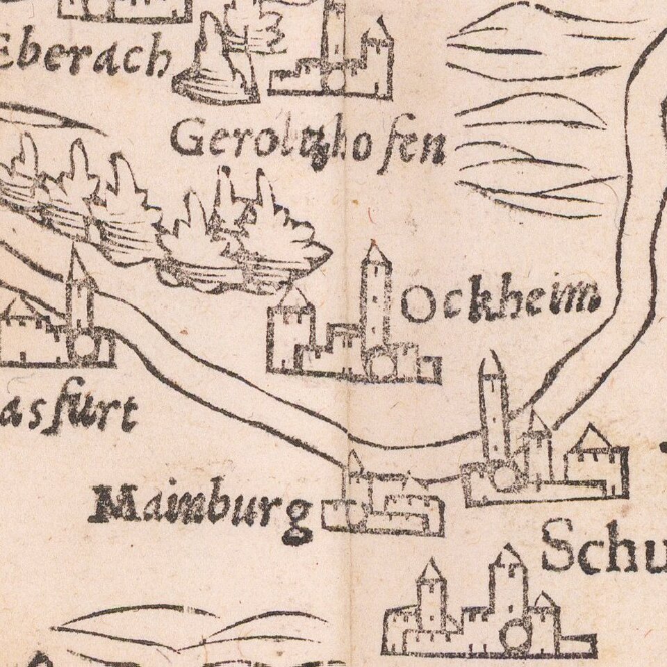 Munster's important early regional map of Germany, centered on Bamberg and the Mein River.