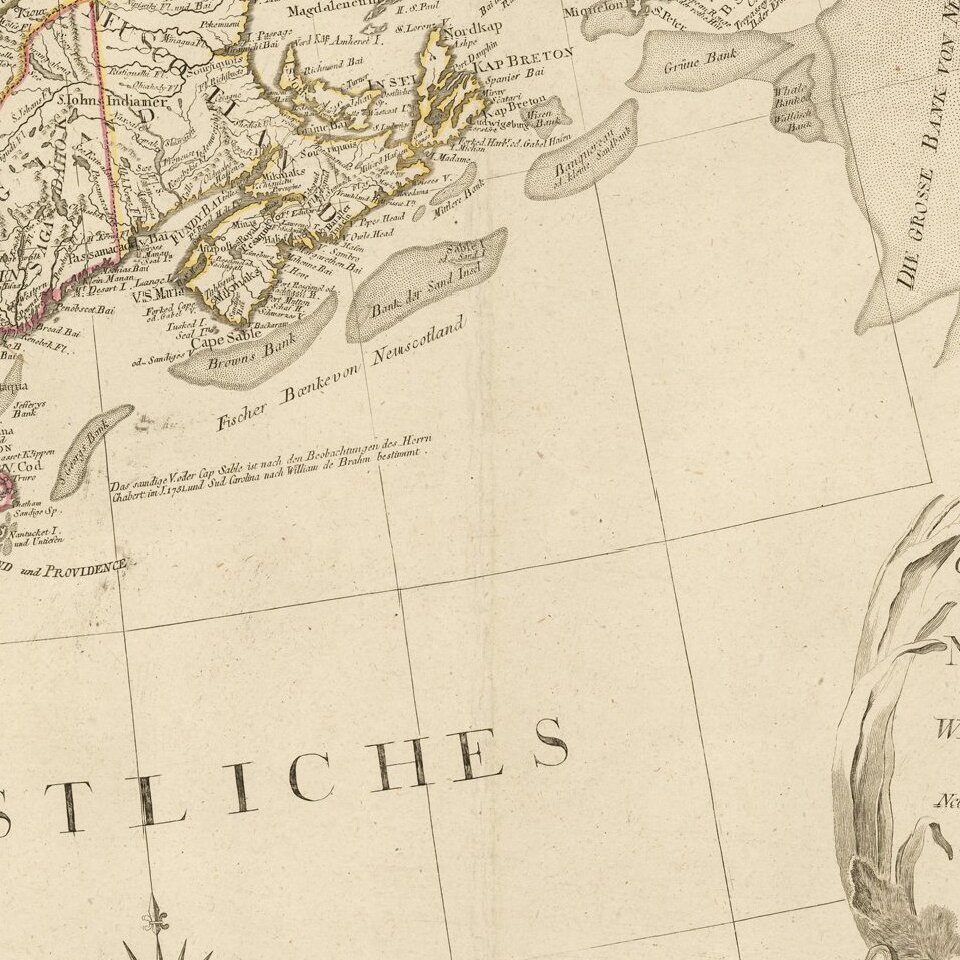 Wide margined example of the northeastern sheet of F.A. Schraebl's 4 sheet wall map of North America, published in 1788.