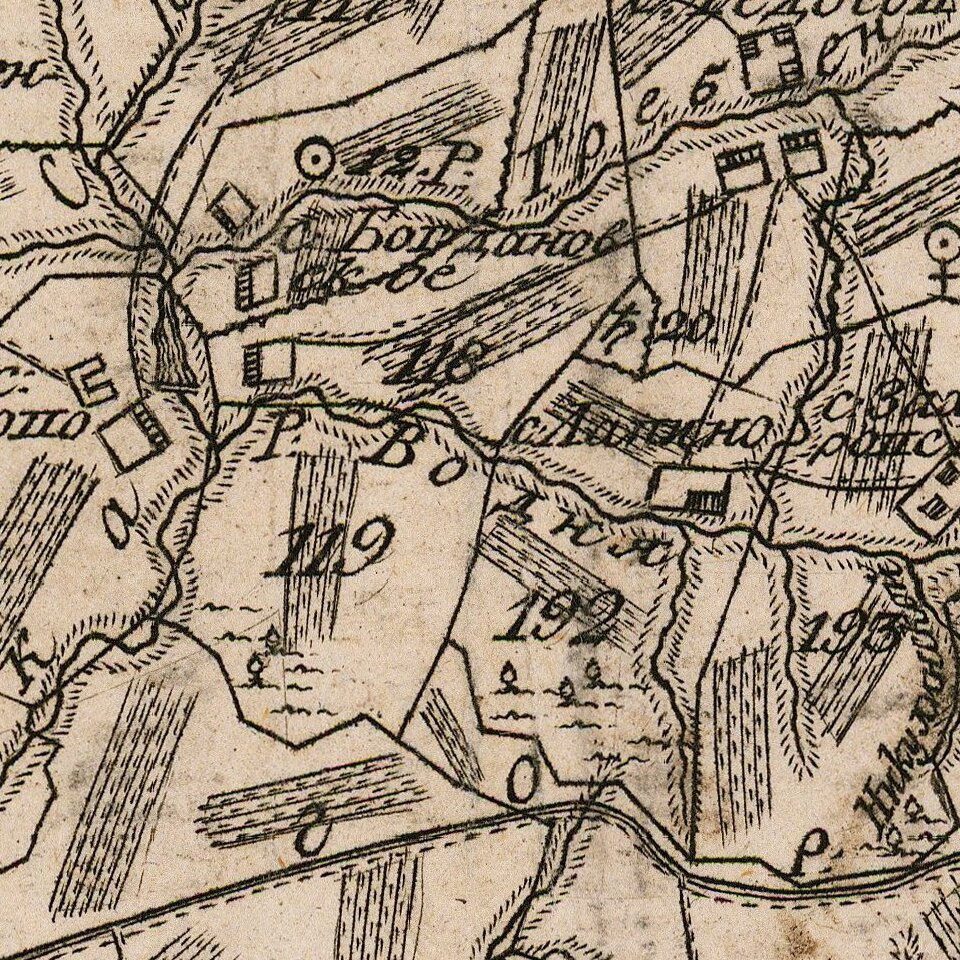 The map is characteristic of the modern surveying that began in Russia under Catherine the Great. The present map is the general map of the region from a cadastral atlas of Kaluga. The Russian Academy of Sciences division for registering landlord ownership produced the Атлас Калужскаго наместничества in Saint Petersburg in 1782. The work was dedicated to Catherine the Great and was part of a wider effort, begun in the 1760s, to provide modern surveys of Russia. Another, less impressive, atlas of Kaluga was produced in 1785.