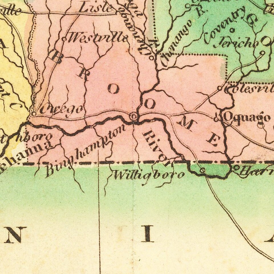 A number of western and northern counties not yet formed. Shows towns, roads, rivers, canals, etc. Profile of the Grand Canal.