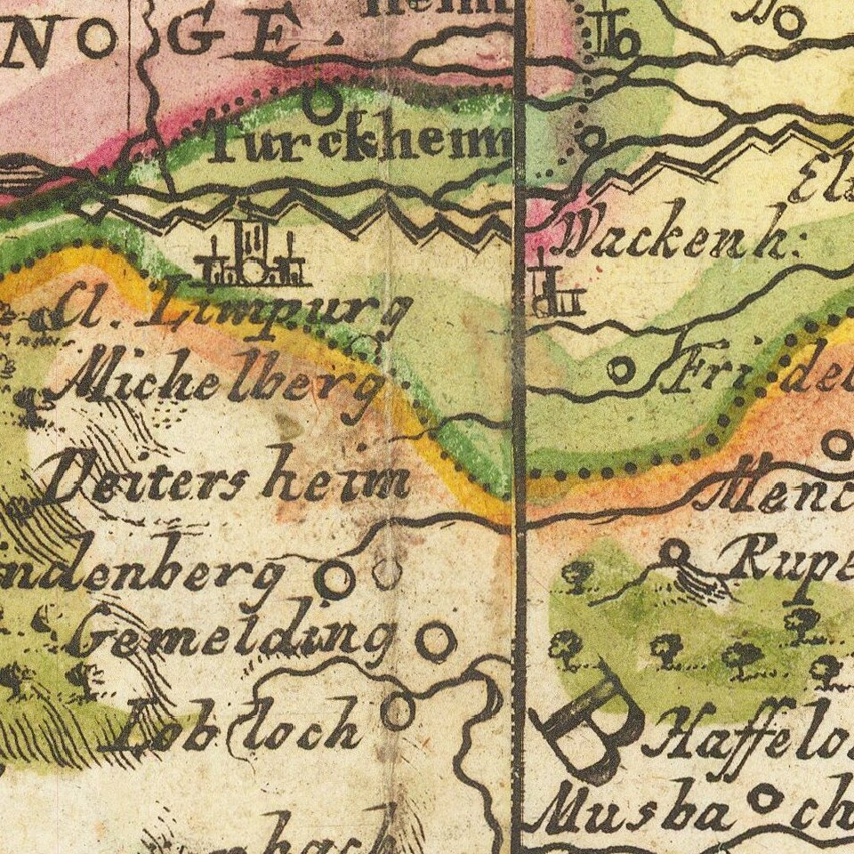 Lower two sheets of Felsecker's 4 sheet map of the theater of war around the Rhine River, published in Nuremberg.