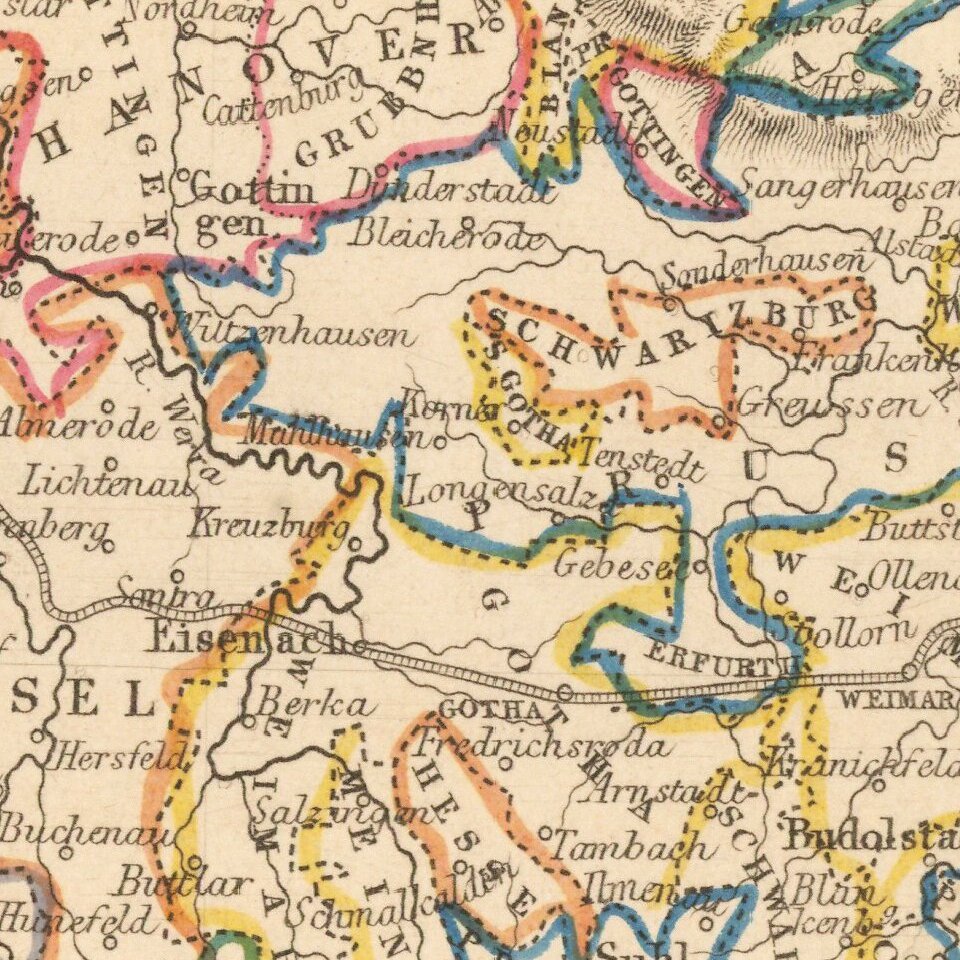 Showing vignettes of Coburby, Cologne on the Rhine, Dresden, The Palace at Saxe Gotha, Luther's House, Silver Mines in the Hartz Mtns, and Guttenberg, Faust and Schoffer portraits.