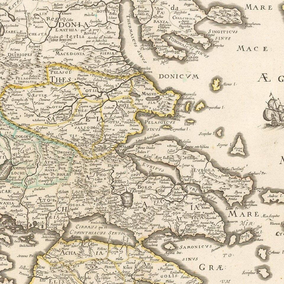 Tavernier and Sanson double-page engraved map of ancient Greece.