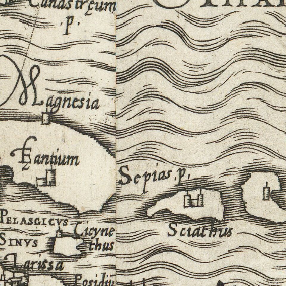 Sophianos was born in Corfu circa 1500 and educated in Rome at the Quirinal College. This training is reflected in the map, which includes information from Markos Mousouros's Editio Princeps of Pausanias's Description of Greece (Venice, Manutius, 1516) and Janus Laskaris's correction of the commentaries on Homer by Eustathios of Thessaloniki (d. c.1194).