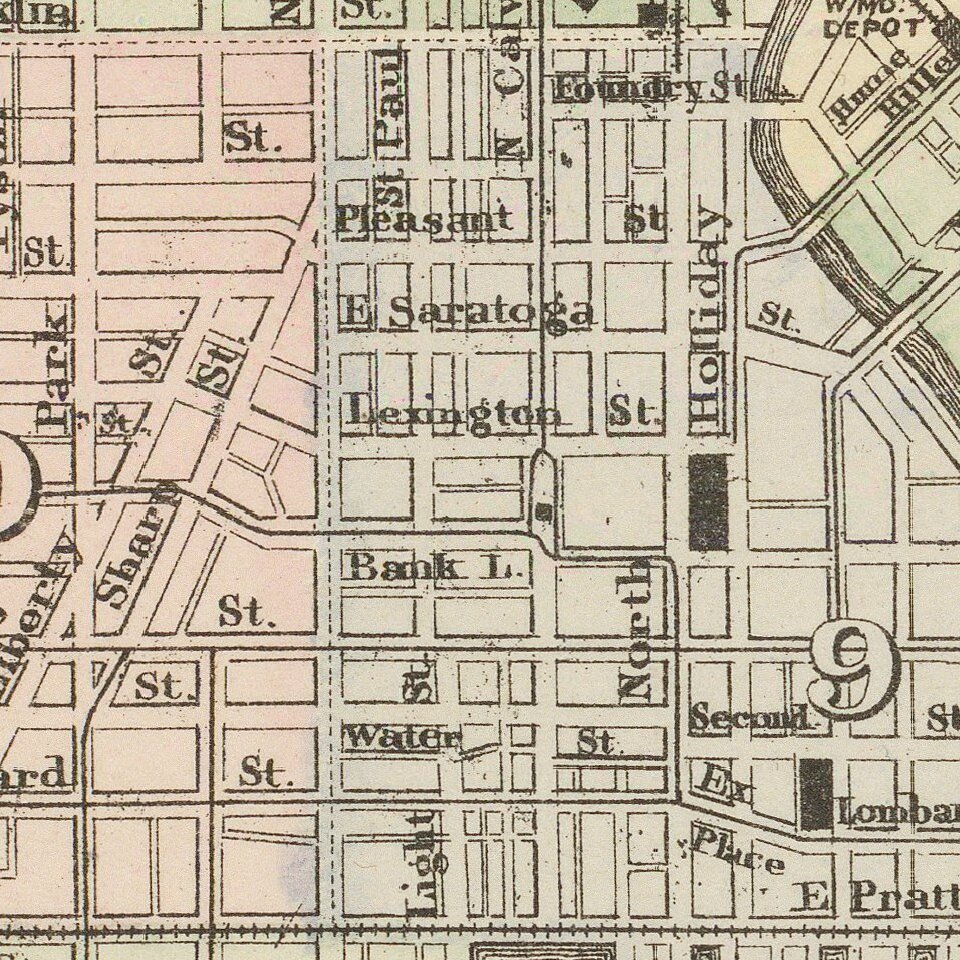Large inset of the Patapsco River and approaches. Includes a population table, showing the various census populations dating back to 1790 and the current census by wards.