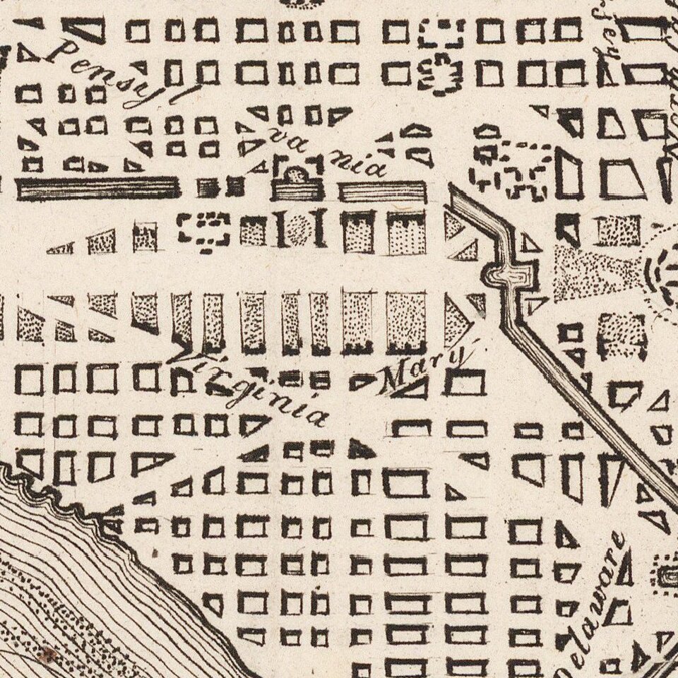Rare German map of Washington DC, based upon Andrew Ellicott's plan, first published in 1792.