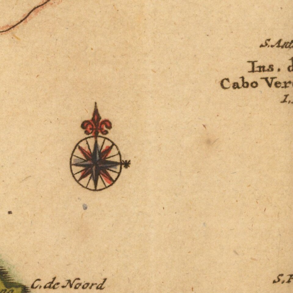 Detailed map of the Atlantic and contiguous coastlines, which was prepared to illustrate the Dutch Account of Girolamo Benzoni's voyage to America in 1541.