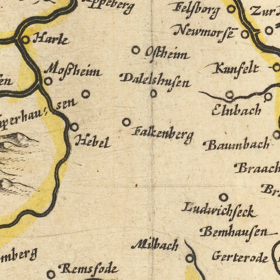 Antique engraved map of the Hesse region in Germany by Willem Janszoon Blaeu.