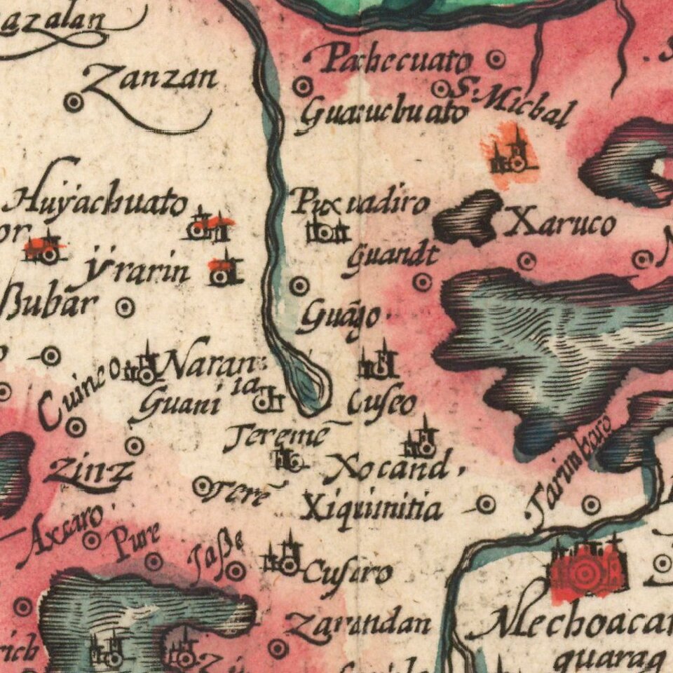 This map and Ortelius' map of the region were some of the first maps to show the region to European audiences and dominated its depiction for the next half century. They were critical for shaping how Europeans viewed New Spain and are also central examples of the early development of atlases.
